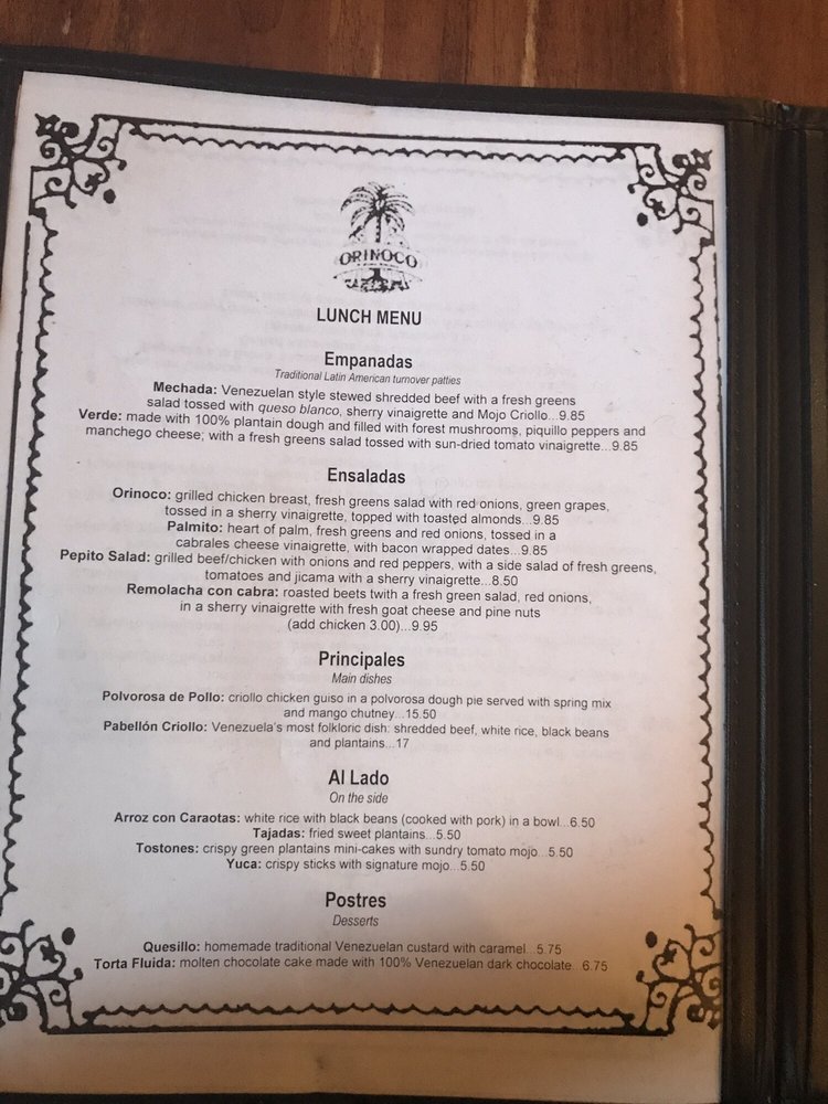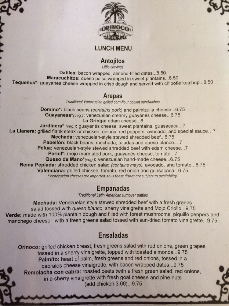 For a heartier option, indulge in the empanadas, especially the mechada, filled with stewed shredded beef. Wrap up your meal with a rich dessert like the torta fluida, made from fine Venezuelan chocolate, ensuring a sweet end to your culinary journey at Orinoco.