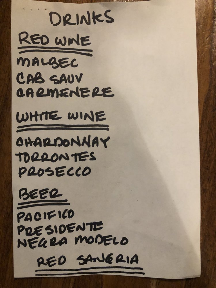 12oz quick smoked strip-steak churrasco, char-grilled with a panela-red- wine-glaze, arugula salad in a balsamic vinaigrette.
